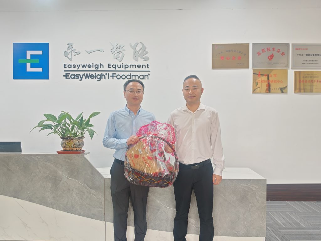 2月25日,正月初九,中山国家健康科技产业基地开展新春“开门红”暖企行动。中山港街道党工委委员、武装部部长李证,健康基地集团总经理助理刘杰一行专程来到广东永一智能设备有限公司走访慰问,详细了解企业节后复工复产情况,送上新春祝福和满满一篮新春果篮,传递党和政府对企业的关心与支持。